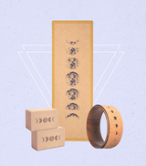 This package includes 2 of our Moon Phases Cork Yoga Blocks, one Moon Cork Yoga mat with a carry strap and our Illuminate Cork wheel that can also be used to support your practice.