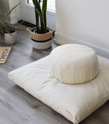 Introducing our White Meditation Set! Includes: our Natural & Organic Zabuton in Sandy White, and your choice of meditation seat